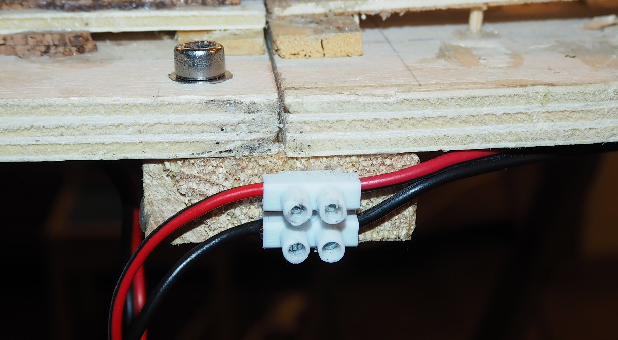 Abbiamo deciso di controllare tutti i componenti del plastico (scambi, semafori etc) da un unico punto, tuttavia per poter separare agevolmente i pannelli occorre che i collegamenti elettrici tra di essi siano ridotti al minimo e possano essere disconnessi agevolmente.