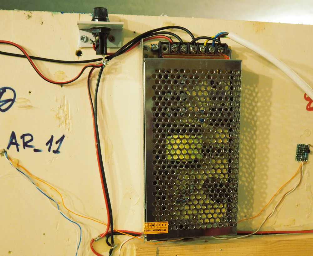Poiché l'alimentatore è presente solo nel primo pannello, occorre portare la tensione a 12V anche nei pannelli successivi. Questo è fatto tramite un collegamento mostrato nella figura seguente.